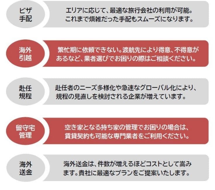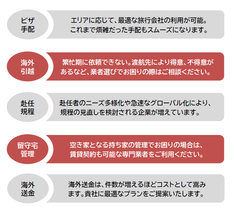 海外赴任者に便利なサービスの一例