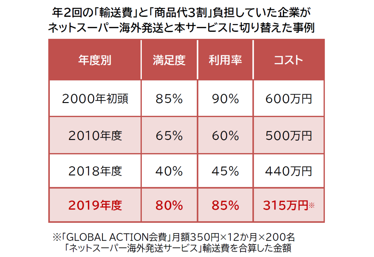 利用率・満足度が低下した従来の「日本食制度」を「GLOBAL ACTIONのネットスーパー」へ移行した事例