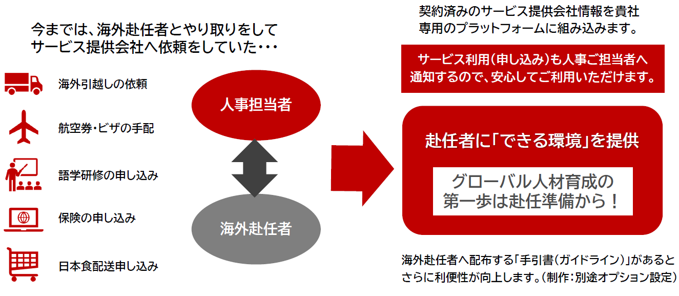 海外人事業務の効率化とコスト削減にも貢献する、これからの海外進出企業に必要な「海外赴任プラットフォーム」として、ぜひご活用ください。