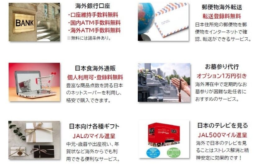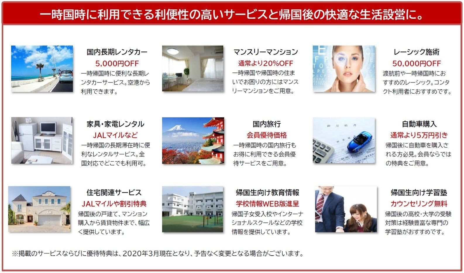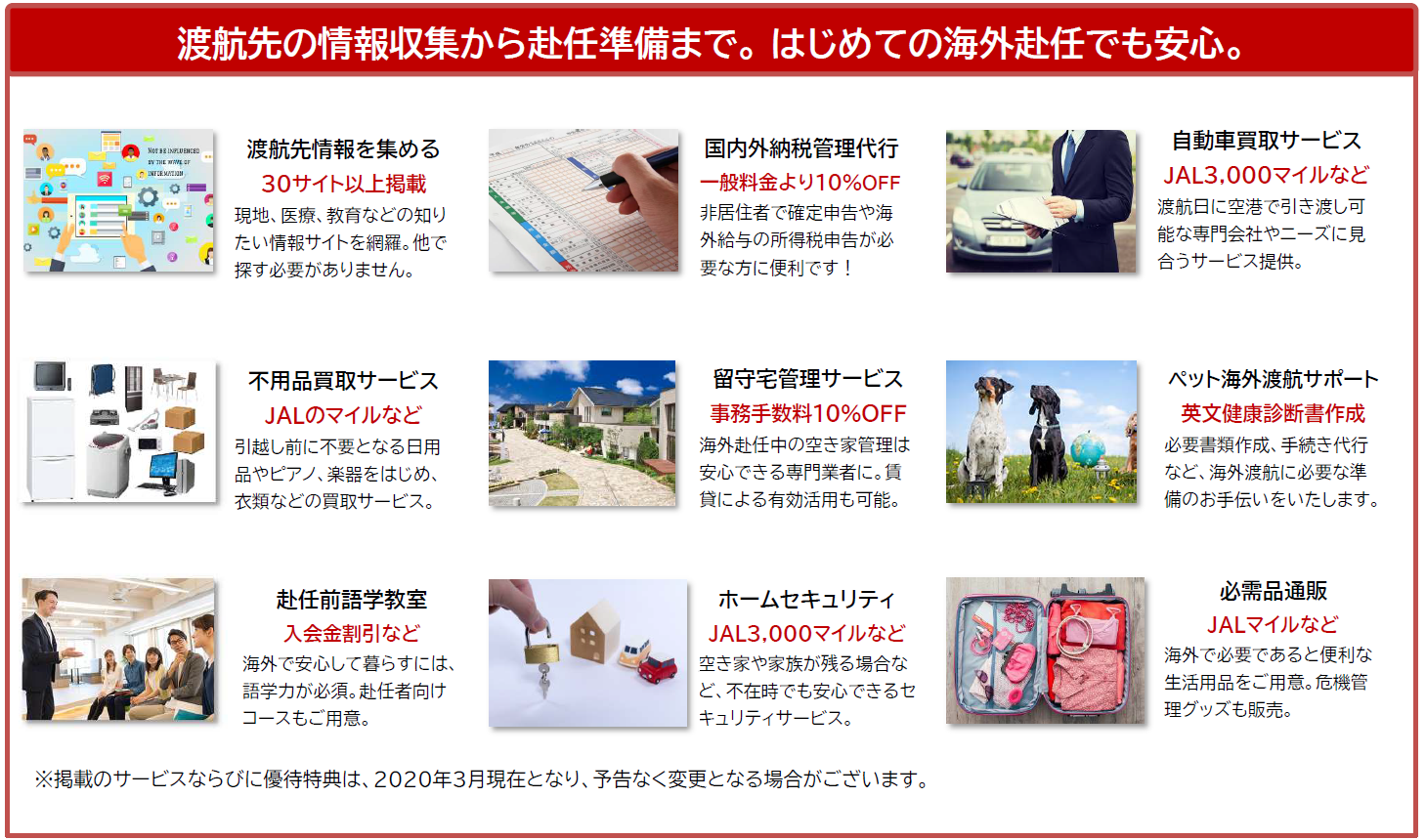 赴任前から海外生活中、一時帰国、本帰国まで、各シーンで利用できる豊富なサービスコンテンツ例