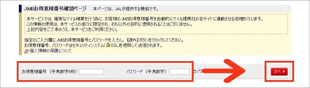 JALのマイルを積算するためには、JMBお得意様番号の認証と登録が必要です。下記手順をご確認いただき、お手続きをお願いします。