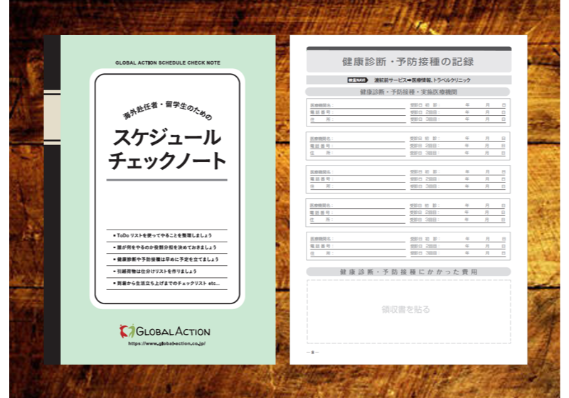 海外生活株式会社が発行する「海外赴任ノート」は、渡航前から渡航後の生活設営まで、日程の管理はもちろん、時系列でやるべきことが分かります!
