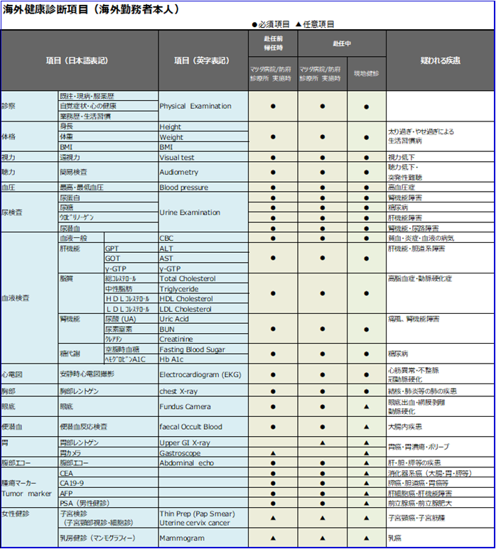 なお、健康診断に関しては本プログラム経由で実施せず、海外拠点会社で実施している場合がありますので、海外拠点の指示に従ってください。