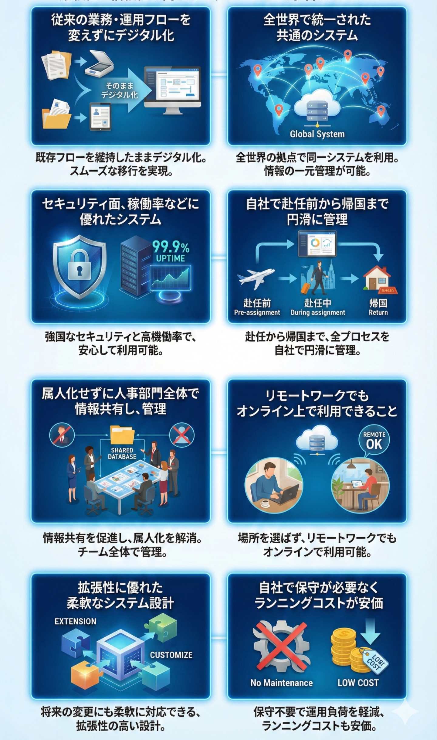 海外人事業務にも最先端のシステムを『海外人事業務のDX化』