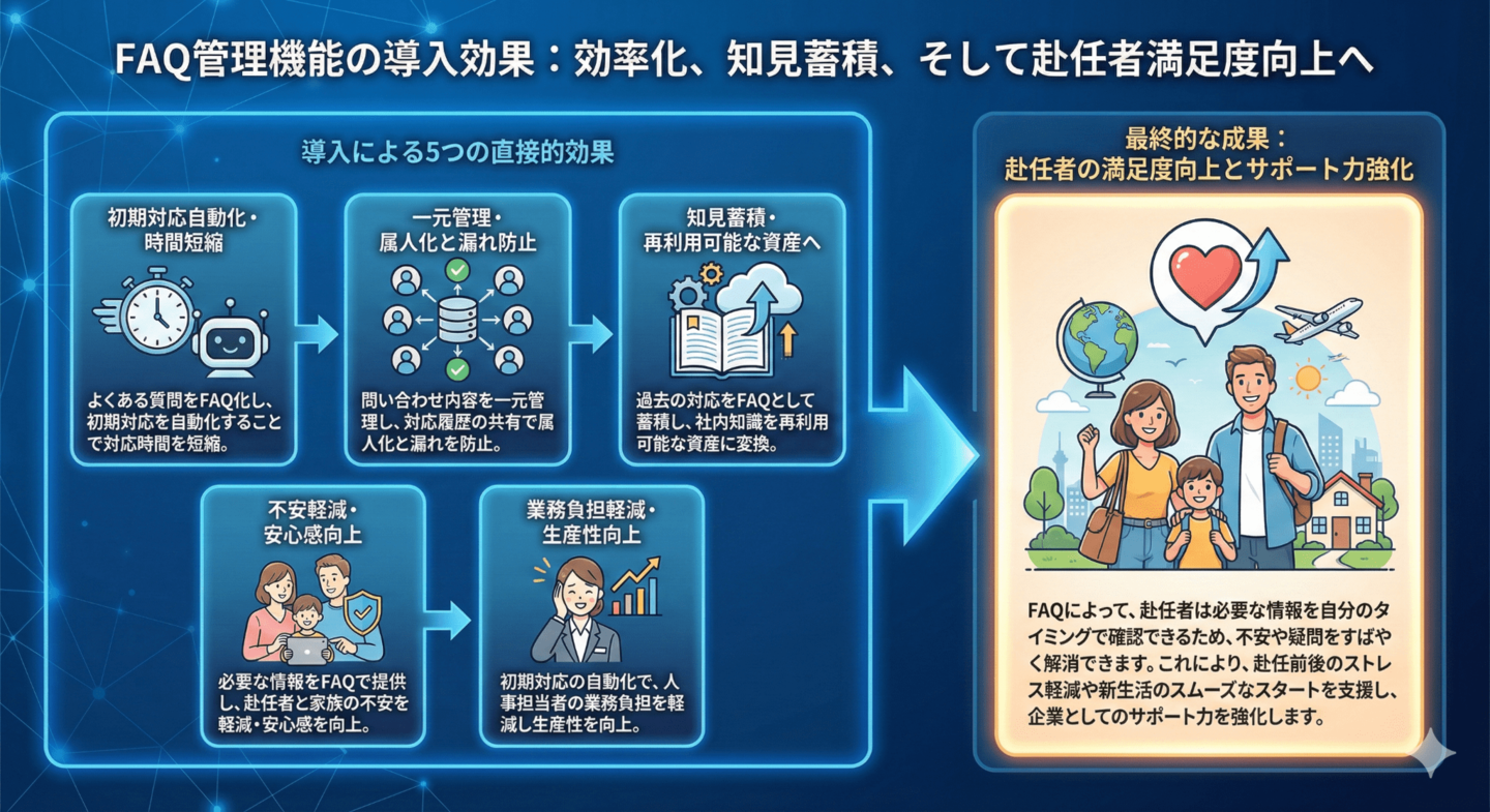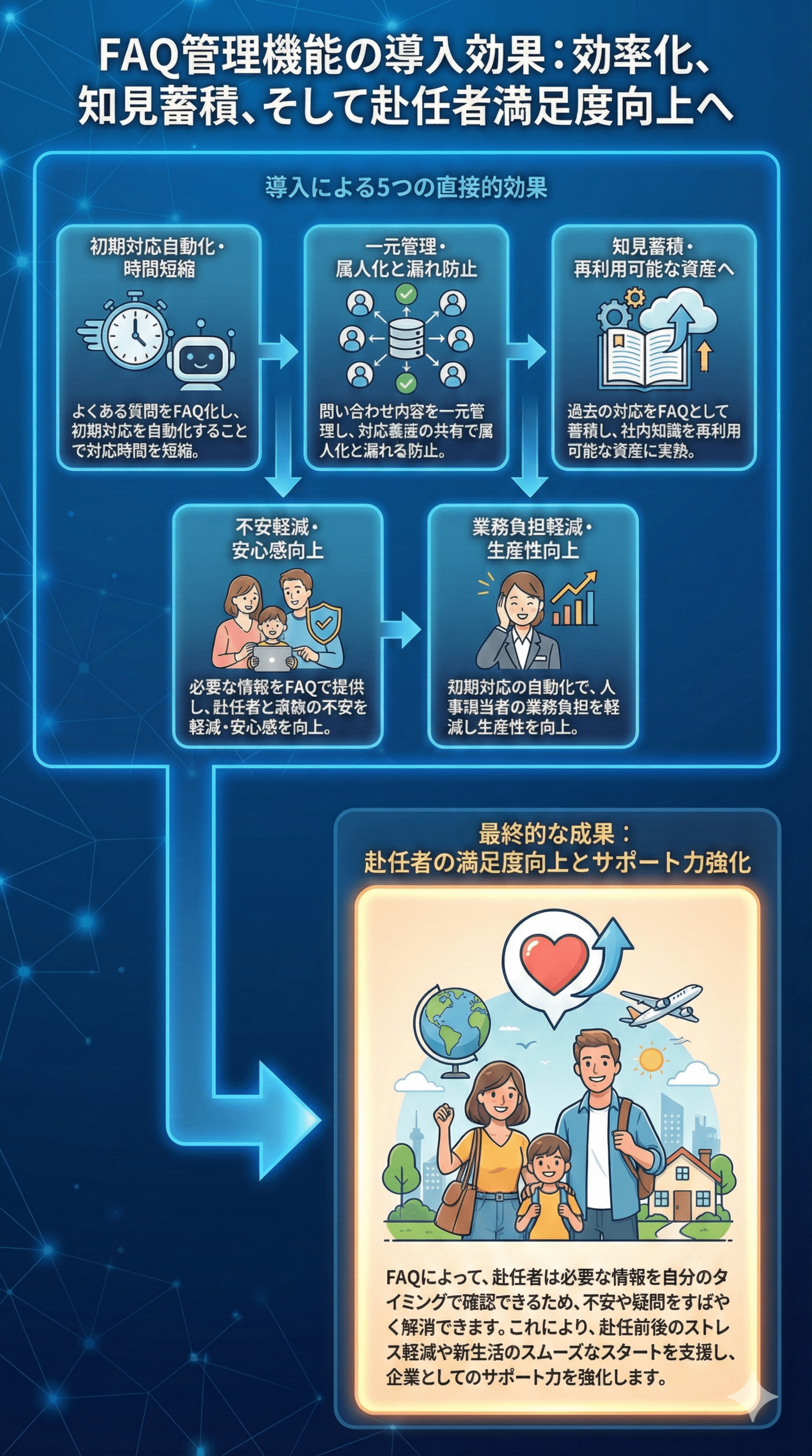 FAQ管理機能で海外赴任者対応をスマートに。人事業務の効率化を実現します。