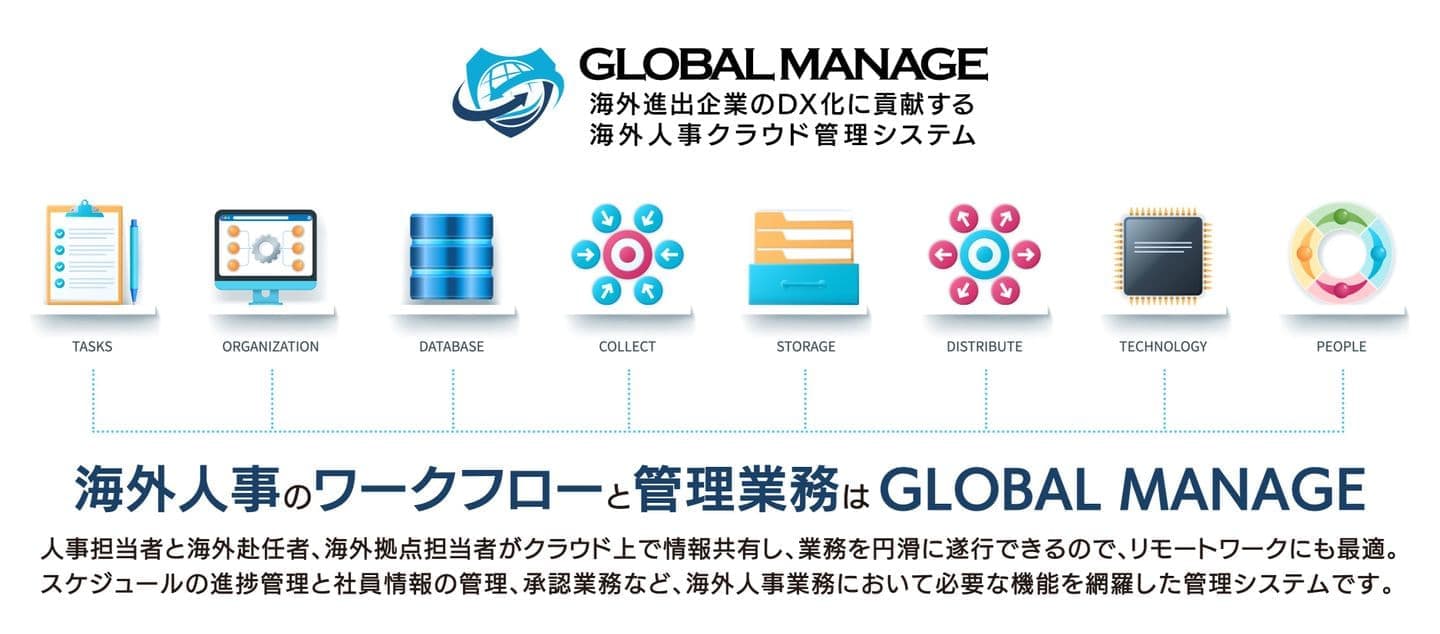 GLOBAL MANAGEは多くの海外人事ご担当者の意見をもとに開発された海外進出企業のためのクラウド型管理システムです。
