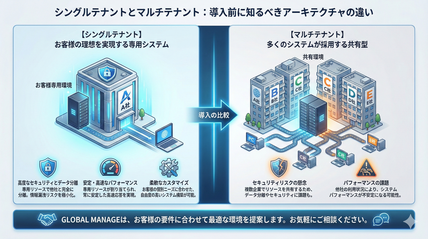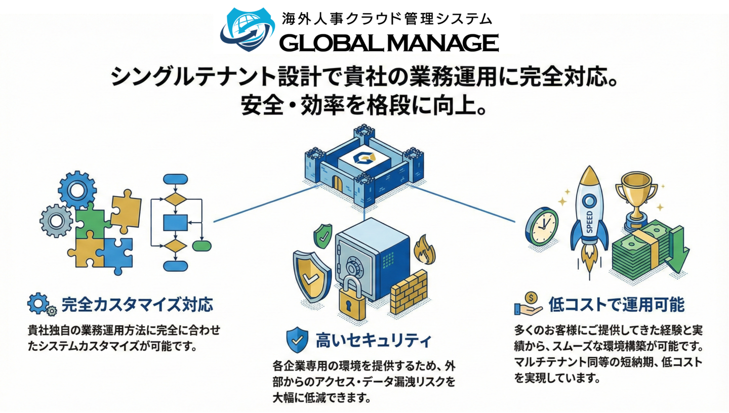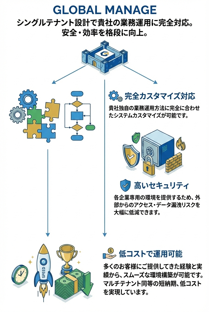 GLOBAL MANAGEはセキュリティ、安全性、パフォーマンス、カスタマイズ性、規制遵守に優れています。