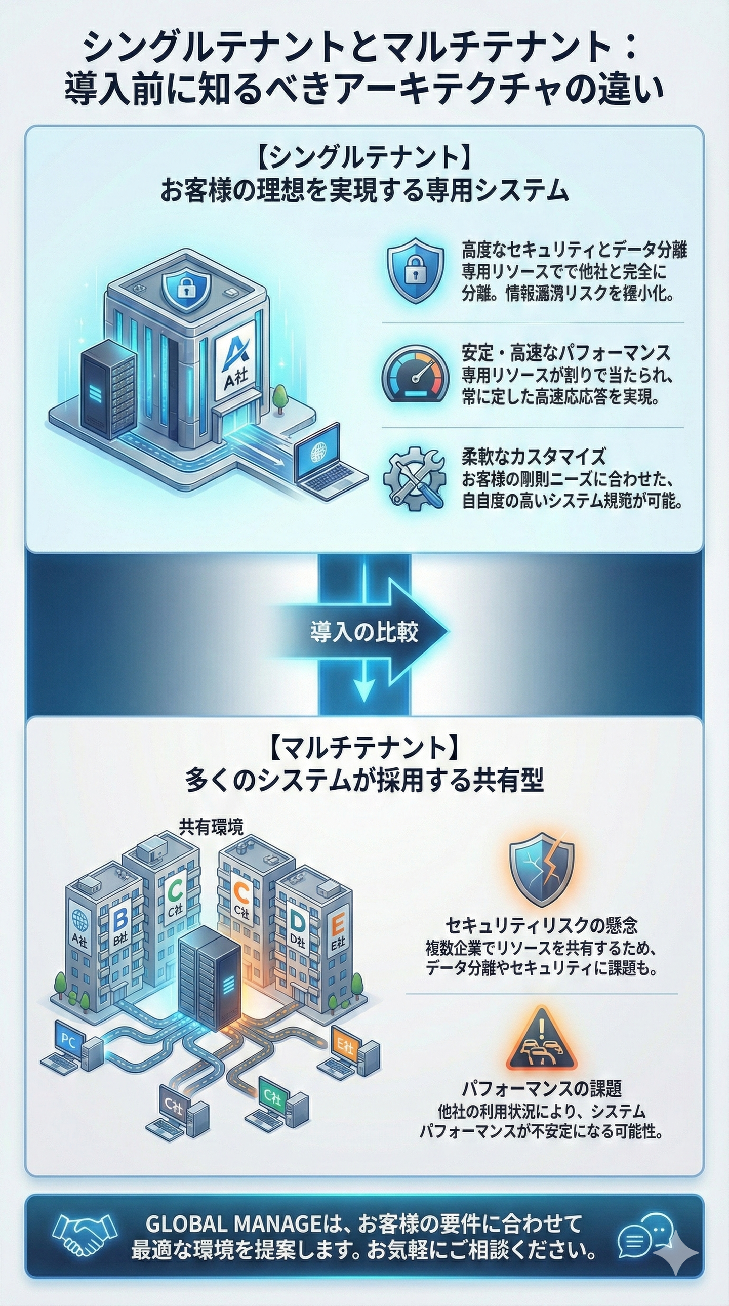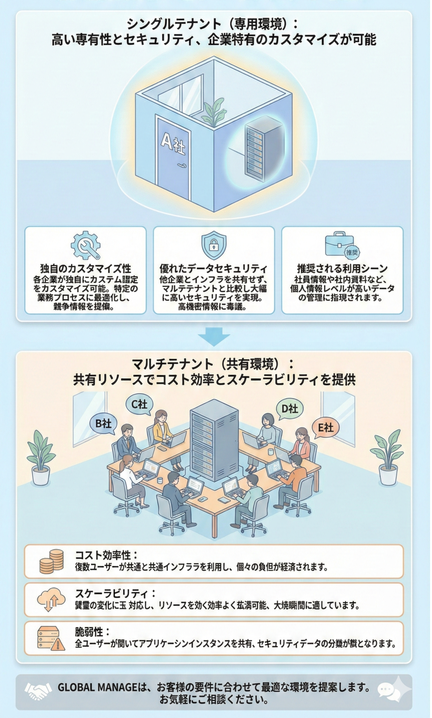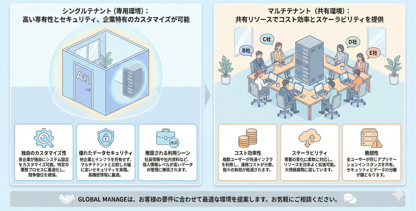 GLOBAL MANAGEはセキュリティ、安全性、パフォーマンス、カスタマイズ性、規制遵守に優れています。